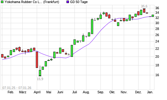 Mit dem Anstieg auf 33,20 EUR hat die Yokohama Rubber-Aktie am 06.01.2026 die 50-Tage-Linie nach oben gekreuzt.