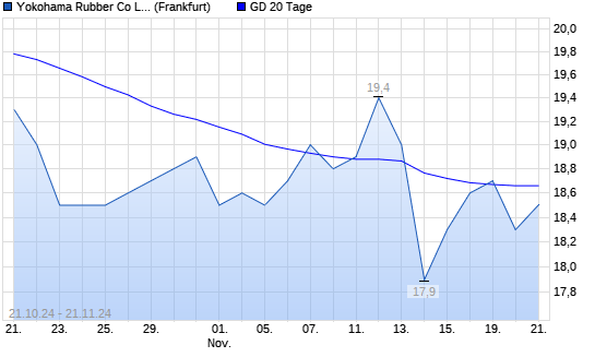 Mit dem Rücksetzer auf 18,30 EUR hat die Yokohama Rubber-Aktie am 20.11.2024 die 20-Tage-Linie nach unten gekreuzt.