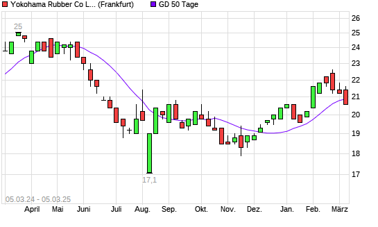 Mit dem Rücksetzer auf 20,80 EUR hat die Yokohama Rubber-Aktie am 04.03.2025 die 50-Tage-Linie nach unten gekreuzt.