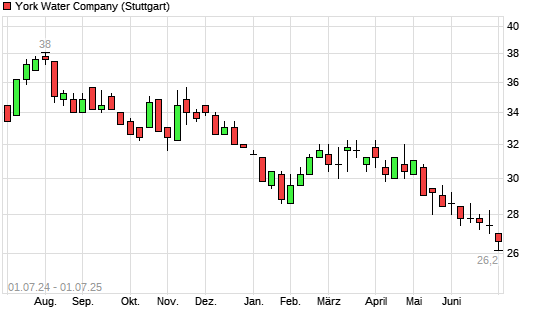 Mit dem Rücksetzer auf 26,20 EUR hat die York Water-Aktie (ISIN US9871841089) am 30.06.2025 ein neues 5-Jahres-Tief erreicht und damit den Kurs vom 26.06.2025 eingestellt.