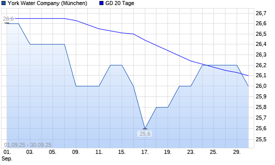 Mit dem Rücksetzer auf 25,80 EUR hat die York Water-Aktie am 29.09.2025 die 20-Tage-Linie nach unten gekreuzt.