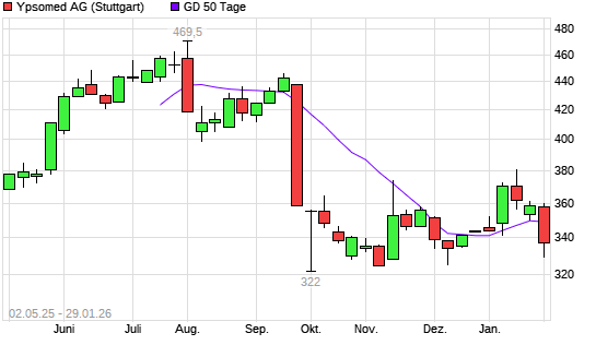 Mit dem Rücksetzer auf 345,50 EUR hat die Ypsomed-Aktie am 28.01.2026 die 50-Tage-Linie nach unten gekreuzt.