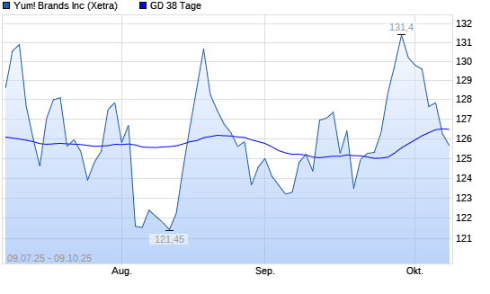 Mit dem Rücksetzer auf 125,95 EUR hat die Yum! Brands-Aktie am 08.10.2025 die 38-Tage-Linie nach unten gekreuzt.
