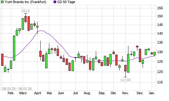 Mit dem Rücksetzer auf 128,20 EUR hat die Yum! Brands-Aktie am 05.01.2026 die 50-Tage-Linie nach unten gekreuzt.