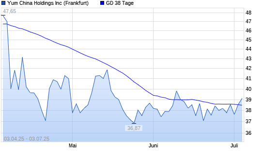 Mit dem Anstieg auf 38,53 EUR hat die Yum China Holdings-Aktie am 02.07.2025 die 38-Tage-Linie nach oben gekreuzt.