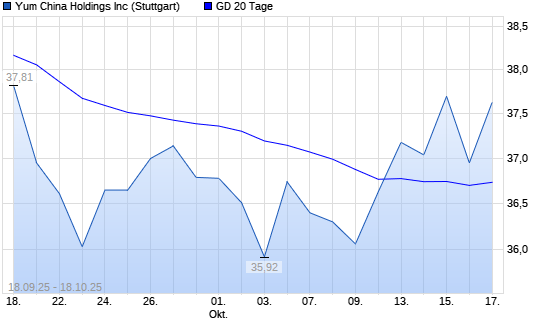 Mit dem Rücksetzer auf 36,48 EUR hat die Yum China Holdings-Aktie am 17.10.2025 die 20-Tage-Linie nach unten gekreuzt.