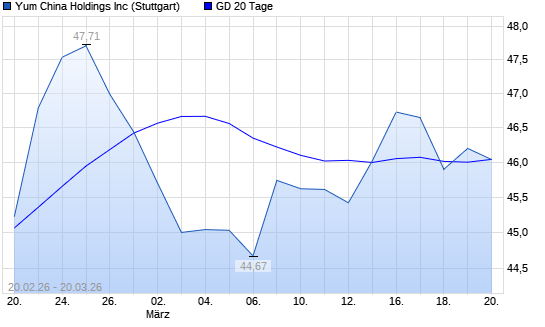 Mit dem Rücksetzer auf 45,54 EUR hat die Yum China Holdings-Aktie am 19.03.2026 die 20-Tage-Linie nach unten gekreuzt.