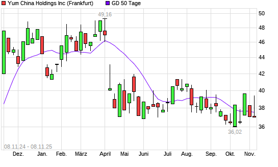 Mit dem Rücksetzer auf 37,03 EUR hat die Yum China Holdings-Aktie am 07.11.2025 die 50-Tage-Linie nach unten gekreuzt.