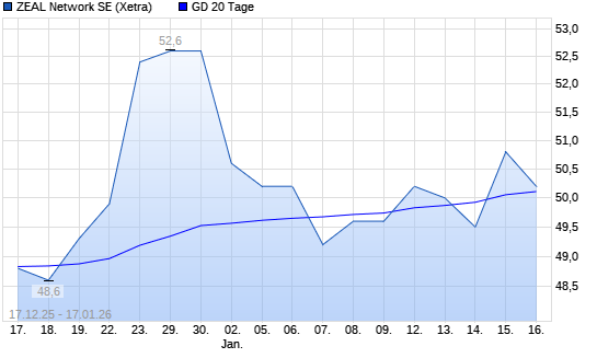 Mit dem Anstieg auf 50,60 EUR hat die ZEAL Network-Aktie am 16.01.2026 die 20-Tage-Linie nach oben gekreuzt.