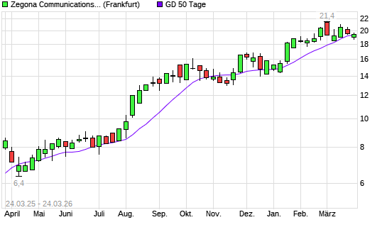 Mit dem Anstieg auf 19,50 EUR hat die ZEGONA COMMUNICAT.-Aktie am 23.03.2026 die 50-Tage-Linie nach oben gekreuzt.