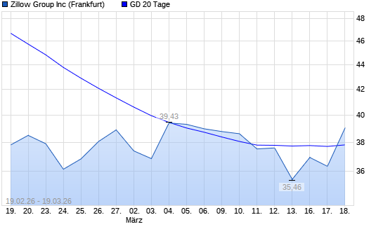 Mit dem Anstieg auf 39,06 EUR hat die ZILLOW GROUP-Aktie am 18.03.2026 die 20-Tage-Linie nach oben gekreuzt.