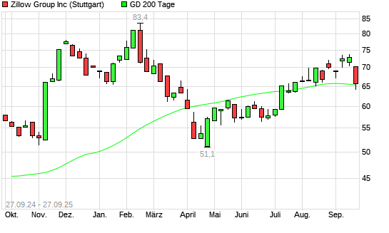 Mit dem Anstieg auf 65,98 EUR hat die ZILLOW GROUP-Aktie am 26.09.2025 die 200-Tage-Linie nach oben gekreuzt.