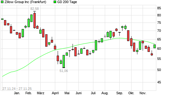 Mit dem Anstieg auf 62,96 EUR hat die ZILLOW GROUP-Aktie am 26.11.2025 die 200-Tage-Linie nach oben gekreuzt.