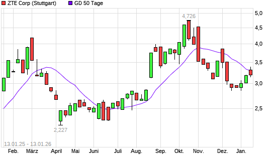 Mit dem Anstieg auf 3,28 EUR hat die ZTE-Aktie am 12.01.2026 die 50-Tage-Linie nach oben gekreuzt.