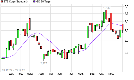 Mit dem Rücksetzer auf 3,73 EUR hat die ZTE-Aktie am 02.12.2025 die 50-Tage-Linie nach unten gekreuzt.