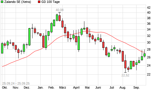 Mit dem Anstieg auf 27,49 EUR hat die Zalando-Aktie am 24.09.2025 die 100-Tage-Linie nach oben gekreuzt.