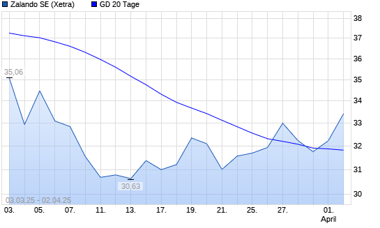 Mit dem Anstieg auf 32,42 EUR hat die Zalando-Aktie am 01.04.2025 die 20-Tage-Linie nach oben gekreuzt.