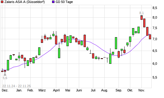 Mit dem Rücksetzer auf 7,00 EUR hat die Zalaris-Aktie am 21.11.2025 die 50-Tage-Linie nach unten gekreuzt.