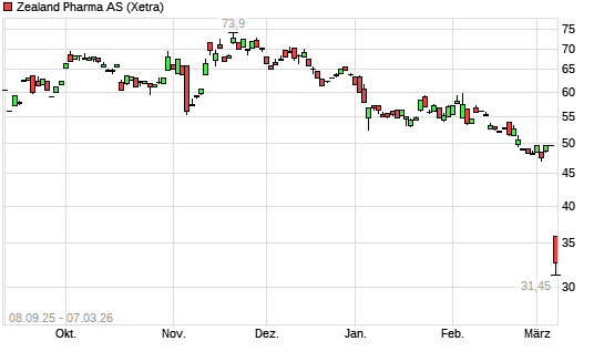 Mit dem Rücksetzer auf 32,16 EUR hat die Zealand Pharma-Aktie (ISIN DK0060257814) am 06.03.2026 ein neues 12-Monats-Tief erreicht und damit den Kurs vom 06.08.2025 ...weiterlesen