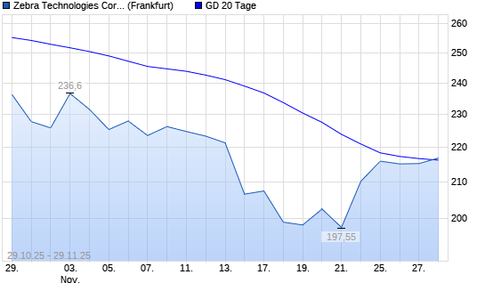 Mit dem Anstieg auf 216,90 EUR hat die Zebra Technologies-Aktie am 28.11.2025 die 20-Tage-Linie nach oben gekreuzt.