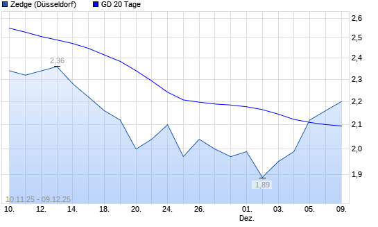 Mit dem Anstieg auf 2,10 EUR hat die Zedge-Aktie am 08.12.2025 die 20-Tage-Linie nach oben gekreuzt.