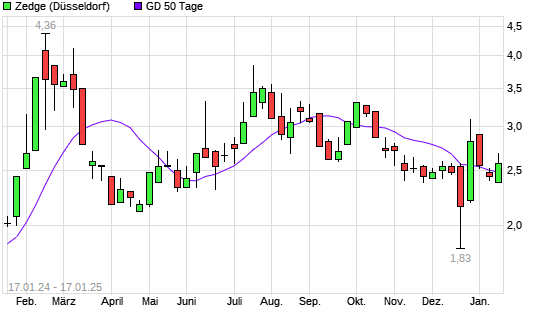 Mit dem Anstieg auf 2,66 EUR hat die Zedge-Aktie am 16.01.2025 die 50-Tage-Linie nach oben gekreuzt.
