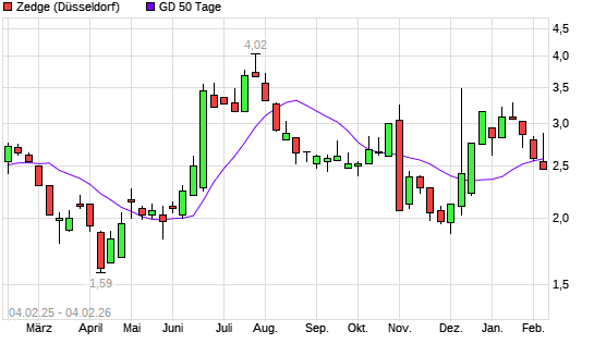 Mit dem Anstieg auf 2,82 EUR hat die Zedge-Aktie am 03.02.2026 die 50-Tage-Linie nach oben gekreuzt.