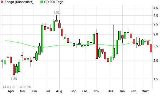 Mit dem Rücksetzer auf 2,28 EUR hat die Zedge-Aktie am 13.03.2026 die 200-Tage-Linie nach unten gekreuzt.