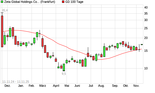 Mit dem Anstieg auf 17,15 EUR hat die Zeta Global Holdings Aktie-Aktie am 10.11.2025 die 100-Tage-Linie nach oben gekreuzt.