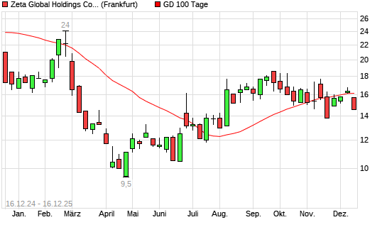 Mit dem Rücksetzer auf 15,20 EUR hat die Zeta Global Holdings Aktie-Aktie am 15.12.2025 die 100-Tage-Linie nach unten gekreuzt.