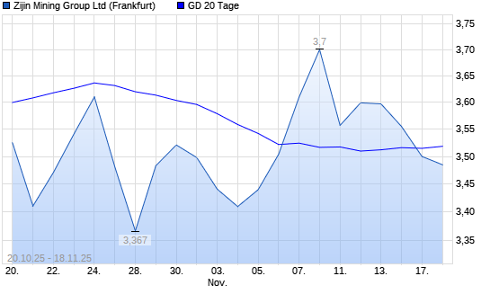 Mit dem Rücksetzer auf 3,50 EUR hat die Zijin Mining-Aktie am 17.11.2025 die 20-Tage-Linie nach unten gekreuzt.