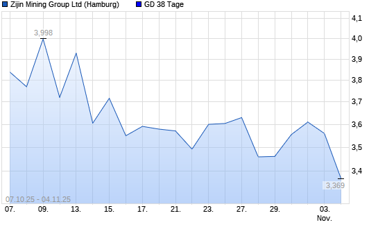 Mit dem Rücksetzer auf 3,44 EUR hat die Zijin Mining-Aktie am 03.11.2025 die 38-Tage-Linie nach unten gekreuzt.