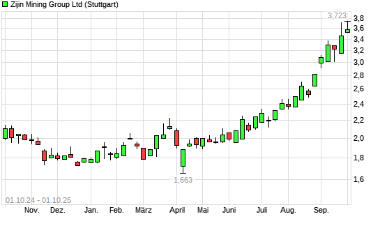 Mit dem Anstieg auf 3,60 EUR hat die Zijin Mining-Aktie (ISIN CNE100000502) am 30.09.2025 ein neues All-Time-High erreicht und damit den Kurs vom 29.09.2025 eingestellt.Die Zijin Mining-Aktie ...weiterlesen