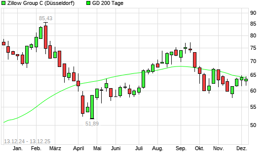 Mit dem Anstieg auf 64,23 EUR hat die Zillow Group C-Aktie am 12.12.2025 die 200-Tage-Linie nach oben gekreuzt.