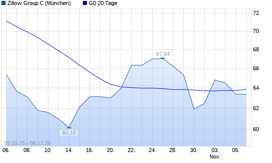 Mit dem Rücksetzer auf 63,19 EUR hat die Zillow Group C-Aktie am 05.11.2025 die 20-Tage-Linie nach unten gekreuzt.