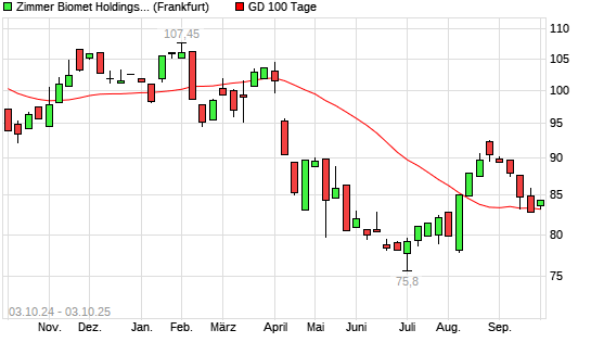 Mit dem Anstieg auf 83,94 EUR hat die Zimmer Holdings-Aktie am 02.10.2025 die 100-Tage-Linie nach oben gekreuzt.