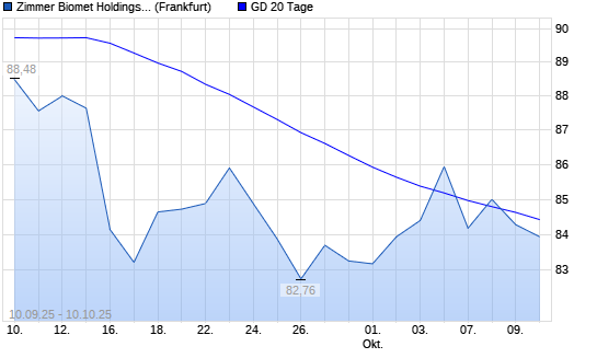 Mit dem Rücksetzer auf 84,28 EUR hat die Zimmer Holdings-Aktie am 09.10.2025 die 20-Tage-Linie nach unten gekreuzt.