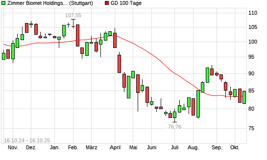 Mit dem Anstieg auf 84,54 EUR hat die Zimmer Holdings-Aktie am 15.10.2025 die 100-Tage-Linie nach oben gekreuzt.Die Zimmer Holdings-Aktie befindet sich seit dem 07.04.2025 im langfristigen Abwärtstrend ...weiterlesen