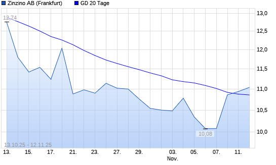 Mit dem Anstieg auf 10,94 EUR hat die Zinzino-Aktie am 11.11.2025 die 20-Tage-Linie nach oben gekreuzt.