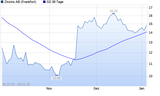 Mit dem Rücksetzer auf 14,26 EUR hat die Zinzino-Aktie am 05.01.2026 die 38-Tage-Linie nach unten gekreuzt.