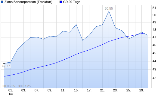 Mit dem Anstieg auf 47,69 EUR hat die Zions Bancorporation-Aktie am 29.07.2025 die 20-Tage-Linie nach oben gekreuzt.