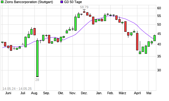 Mit dem Anstieg auf 44,25 EUR hat die Zions Bancorporation-Aktie am 13.05.2025 die 50-Tage-Linie nach oben gekreuzt.
