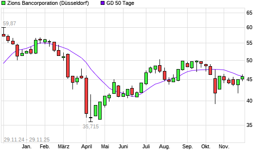 Mit dem Anstieg auf 45,83 EUR hat die Zions Bancorporation-Aktie am 28.11.2025 die 50-Tage-Linie nach oben gekreuzt.