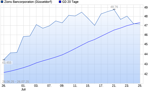 Mit dem Rücksetzer auf 46,78 EUR hat die Zions Bancorporation-Aktie am 25.07.2025 die 20-Tage-Linie nach unten gekreuzt.