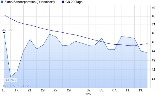 Mit dem Rücksetzer auf 43,45 EUR hat die Zions Bancorporation-Aktie am 14.11.2025 die 20-Tage-Linie nach unten gekreuzt.