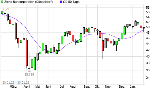 Mit dem Rücksetzer auf 48,49 EUR hat die Zions Bancorporation-Aktie am 29.01.2026 die 50-Tage-Linie nach unten gekreuzt.