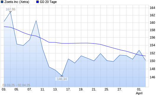 Mit dem Anstieg auf 152,76 EUR hat die Zoetis-Aktie am 01.04.2025 die 20-Tage-Linie nach oben gekreuzt.