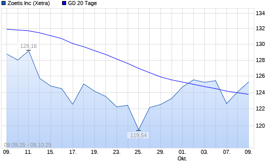 Mit dem Anstieg auf 124,06 EUR hat die Zoetis-Aktie am 08.10.2025 die 20-Tage-Linie nach oben gekreuzt.