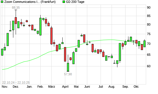 Mit dem Anstieg auf 72,23 EUR hat die Zoom Video Communications-Aktie am 21.10.2025 die 200-Tage-Linie nach oben gekreuzt.