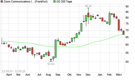 Mit dem Rücksetzer auf 67,30 EUR hat die Zoom Video Communications-Aktie am 11.03.2025 die 200-Tage-Linie nach unten gekreuzt.
